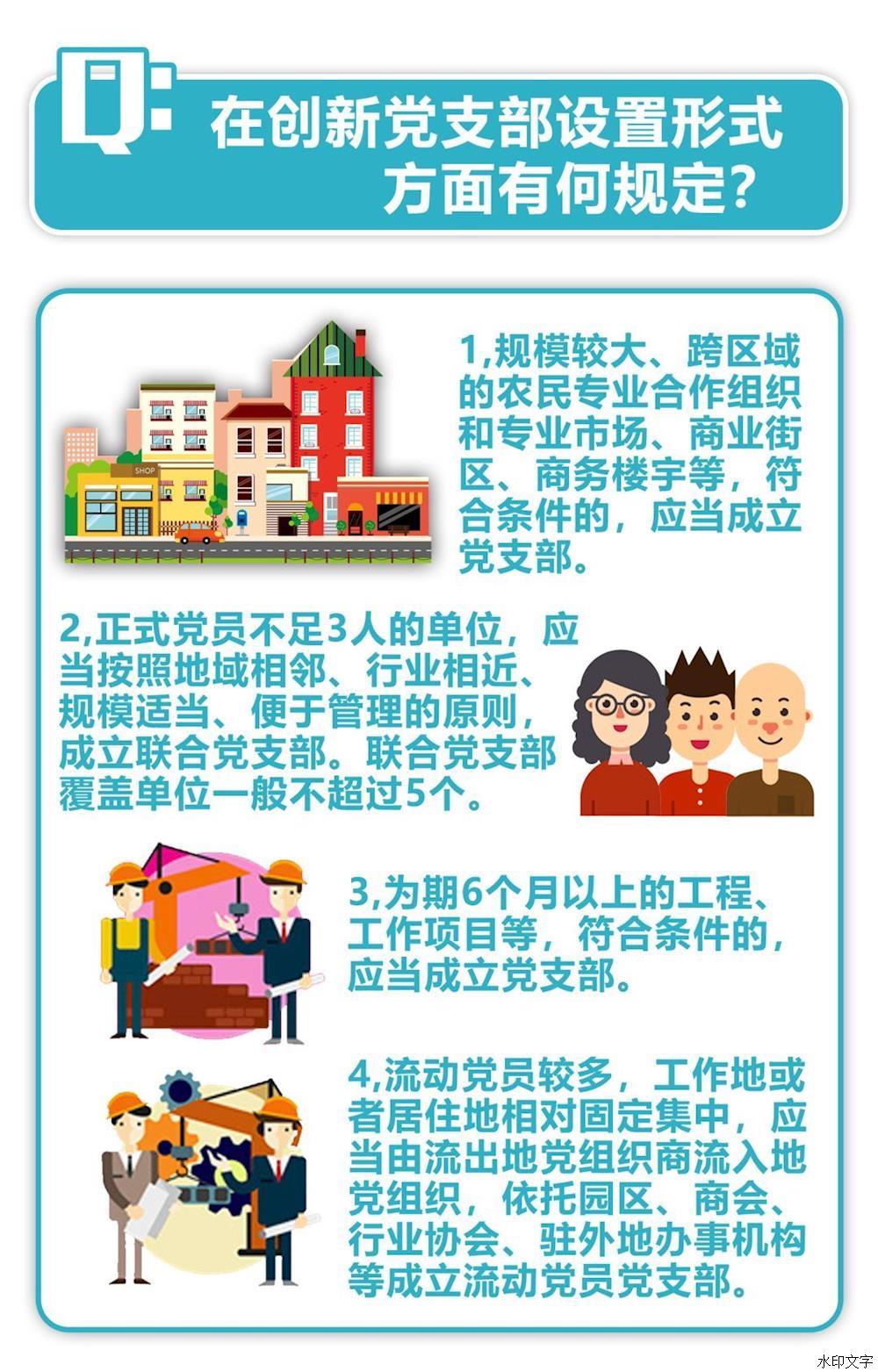 規(guī)模較大、跨區(qū)域的農(nóng)民專業(yè)合作組織,專業(yè)市場、商業(yè)街區(qū)、商務(wù)樓宇等,符合條件的,應(yīng)當(dāng)成立黨支部。