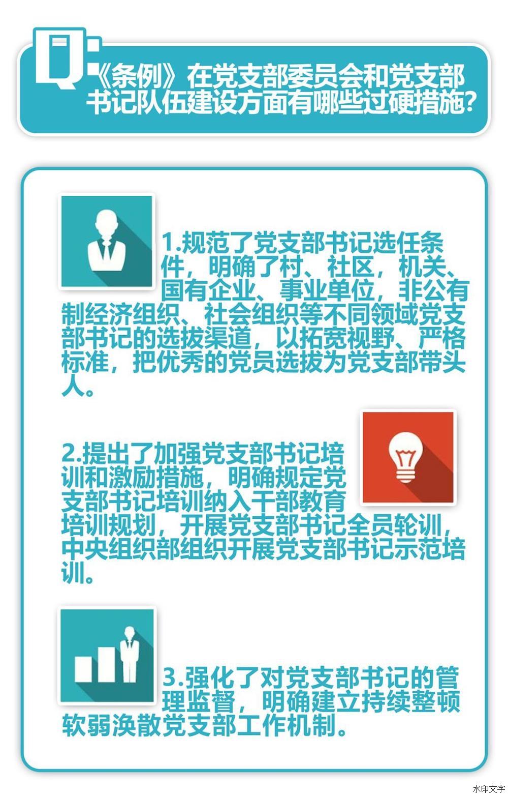 通知強調(diào),重視黨支部、善抓黨支部,是黨員領(lǐng)導(dǎo)干部政治成熟的重要標(biāo)志。各級黨委(黨組)要牢固樹立政治意識、大局意識、核心意識、看齊意識,切實把抓好黨支部作為黨的組織體系建設(shè)的基本內(nèi)容、管黨治黨的基本任務(wù)、檢驗黨建工作成效的基本標(biāo)準(zhǔn),采取有力措施,推動《條例》落到實處、見到實效。要抓好《條例》的學(xué)習(xí)宣傳和貫徹落實,利用報紙、廣播、電視和手機、網(wǎng)絡(luò)等媒介,通過專題研討、集中培訓(xùn)等方式,使各級黨組織、廣大黨員特別是黨支部書記深入領(lǐng)會《條例》精神,全面掌握《條例》內(nèi)容,切實增強貫徹執(zhí)行《條例》的思想自覺和行動自覺。要加強對黨員領(lǐng)導(dǎo)干部的培訓(xùn),把《條例》納入黨委(黨組)理論學(xué)習(xí)中心組學(xué)習(xí)內(nèi)容和黨校(行政學(xué)院)教育課程,提高各級領(lǐng)導(dǎo)班子抓好黨支部工作、推動黨支部建設(shè)的本領(lǐng)。要加強監(jiān)督檢查,對貫徹落實《條例》不力的嚴(yán)肅追責(zé)問責(zé)。中央組織部要會同有關(guān)部門加強督促落實,確保各項規(guī)定得到貫徹執(zhí)行。