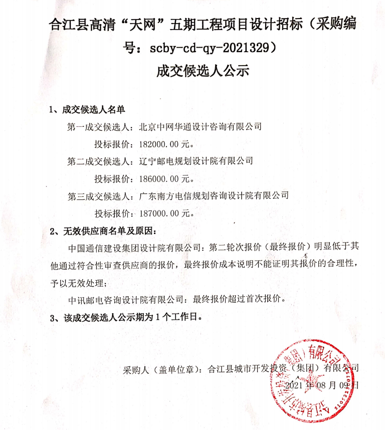合江縣高清“天網(wǎng)”五期工程項(xiàng)目設(shè)計招標(biāo)成交候選人公示