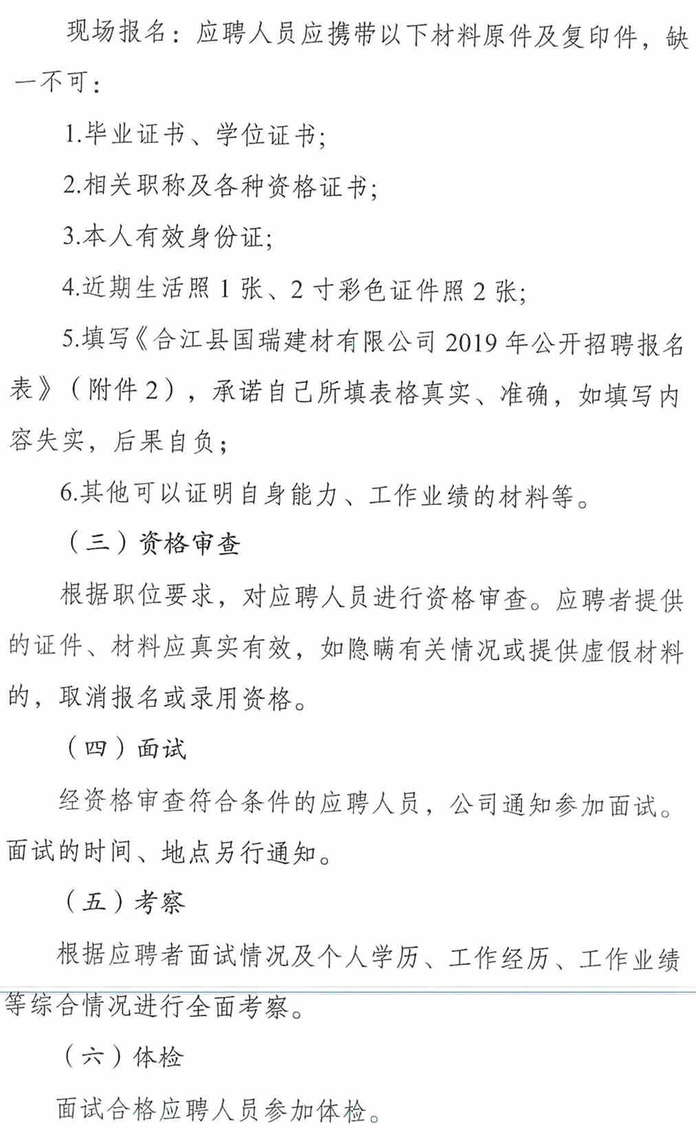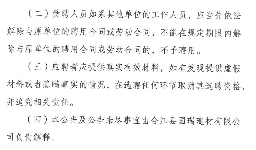 合江縣國瑞建材有限公司2019年7月公開招聘工作人員公告