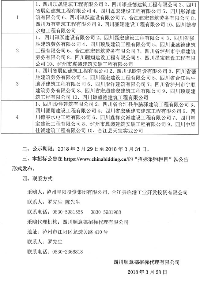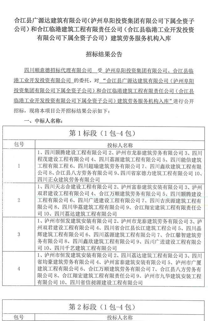 公告:建筑勞務服務機構入庫招標結果公告
