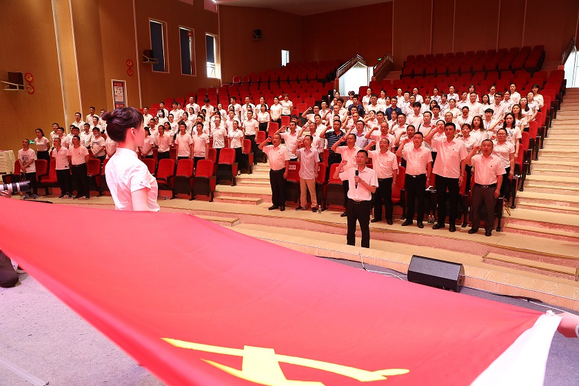 在雄壯的國歌聲中,大會拉開了帷幕。黨委副書記、紀委書記聶仕華帶領(lǐng)全體黨員重溫了入黨誓詞,以此牢記黨的宗旨,強化黨員意識。