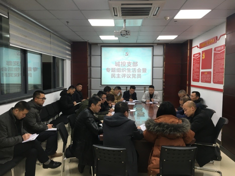 2019年12月19日上午,城投支部召開專題組織生活會暨民主評議黨員,城投支部副書記譙棣升主持會議,支部全體黨員參加,城投公司總經(jīng)理張學(xué)彬等領(lǐng)導(dǎo)列席,阜陽集團(tuán)黨委副書記、紀(jì)委書記聶仕華參會指導(dǎo)。