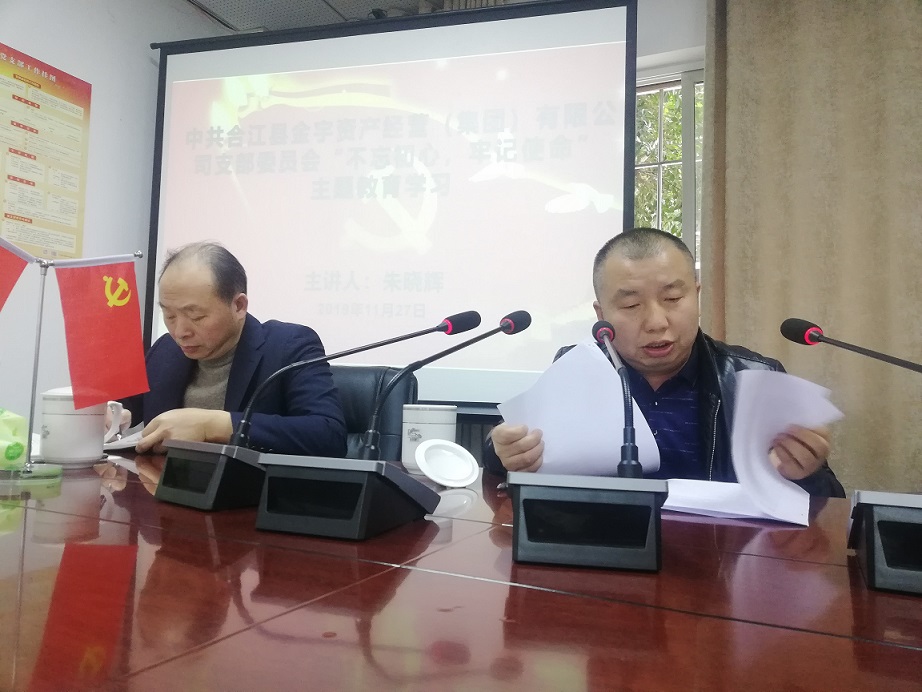2019年11月27日合江縣金宇資產(chǎn)經(jīng)營(yíng)(集團(tuán))有限公司組織“不忘初心、牢記使命”主題教育學(xué)習(xí),朱曉輝總經(jīng)理在會(huì)上要求員工時(shí)刻牢記“講政治、講忠誠(chéng)”“守紀(jì)律、講規(guī)矩”,樹牢紅線意識(shí);指出主題教育學(xué)習(xí)在時(shí)間安排上雖然接近尾聲,但是時(shí)刻不能松懈,要持續(xù)增強(qiáng)“四個(gè)意識(shí)”、堅(jiān)定“四個(gè)自信”、做到“兩個(gè)維護(hù)”,為新時(shí)代發(fā)展站好崗、履好職。