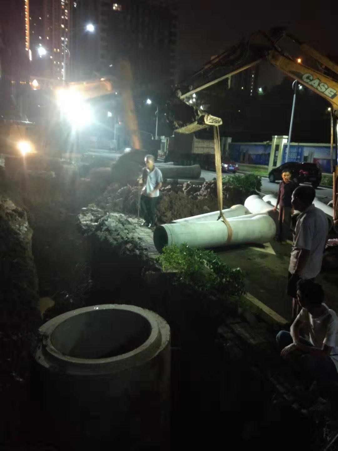 2019年7月15日晚,合江鎮(zhèn)菜壩社區(qū)軍民街因污水管道堵塞導(dǎo)致污水外溢。合江縣城市開發(fā)投資(集團(tuán))有限公司接到通知后,積極響應(yīng)縣綜合執(zhí)法局指令,立即組織施工隊伍開展應(yīng)急搶險施工,經(jīng)過連夜奮戰(zhàn),完成了排污管道的應(yīng)急搶修工作,解決了該處化糞池經(jīng)常因上游水量過大導(dǎo)致污水外溢、污染環(huán)境的問題,切實保障了群眾生命財產(chǎn)安全。