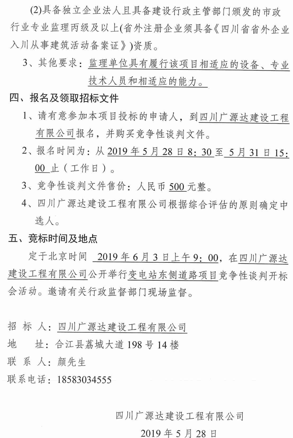 變電站東側(cè)道路項(xiàng)目(監(jiān)理)競爭性談判公告