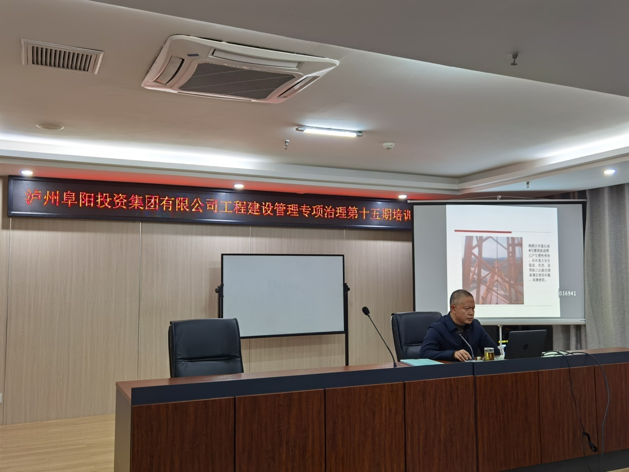 2021 年 10月28日,瀘州阜陽投資集團有限公司開展工程建設管理專項治理第十五期培訓,培訓會議由廣源達公司董事長張學彬主講,各級公司工程項目管理人員參加。