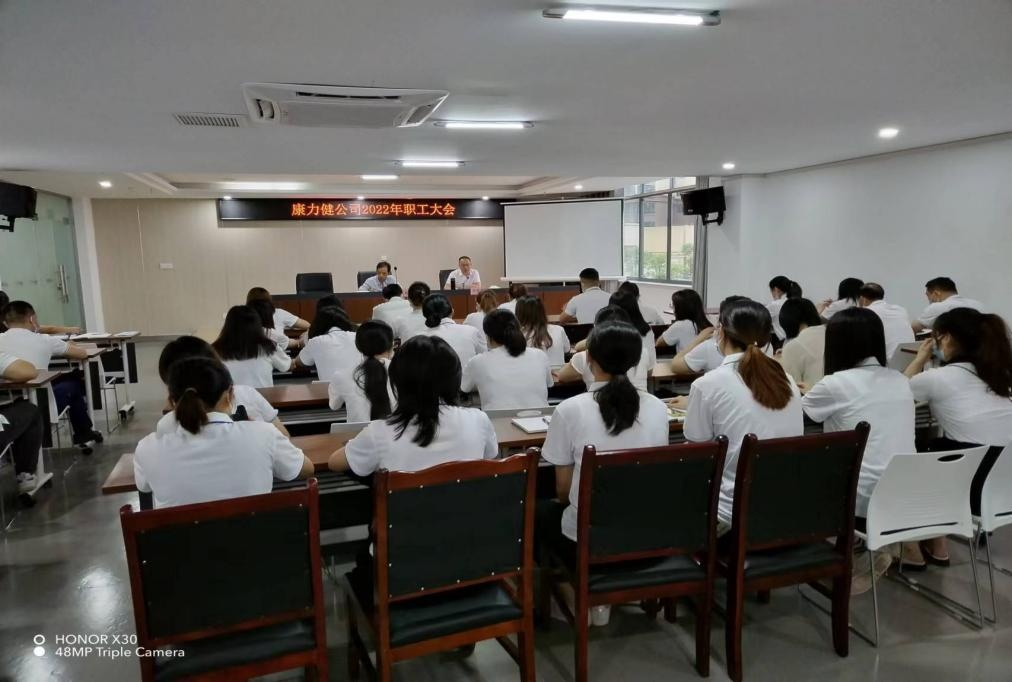 2022 年 6 月 27 日上午,瀘州康力健醫(yī)療投資有限公司 在 公 司 大 會 議 室 舉 行 2022 年 職 工 大 會 。 公 司 董 事 長 胡 天 華 、 總經理鄭世來出席了大會, 并在大會上發(fā)表重要講話。 本次 大會分為上半年工作總結、 下半年工作計劃及安全生產會議 三個部分, 旨在總結公司上半年的發(fā)展情況, 完善下半年的 發(fā)展計劃及 “ 對標找差、提能增效 ” 活動開展情況,鄭世來總 經理提出 : 一是要理清業(yè)務工作思路,對目標任務高標準嚴 要求的貫徹執(zhí)行;二是要強化落實 “ 兩個責任 ” ,抓好黨的建 設和企業(yè)管理。 將組織相關人員不定期對公司各崗位履職情 況進行檢查監(jiān)督, 發(fā)現問題, 立即指出督促整改到位, 建立 健全各項規(guī)章制度, 以制度管人, 推動公司各職能部門履職 盡責, 提升公司盈利能力和盈利水平, 并對廉潔從業(yè)及安全 生產管理制度進行了的宣講。