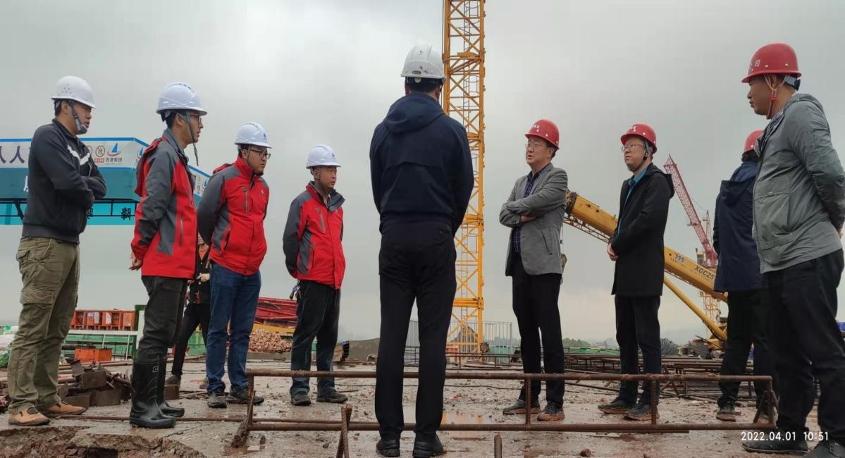 2022 年 4 月 1 日上午, 江北公司陳目科董事長帶隊(duì)視察 江北連接線、 江北文化綜合體項(xiàng)目、 學(xué)府家園等項(xiàng)目建設(shè)情況。